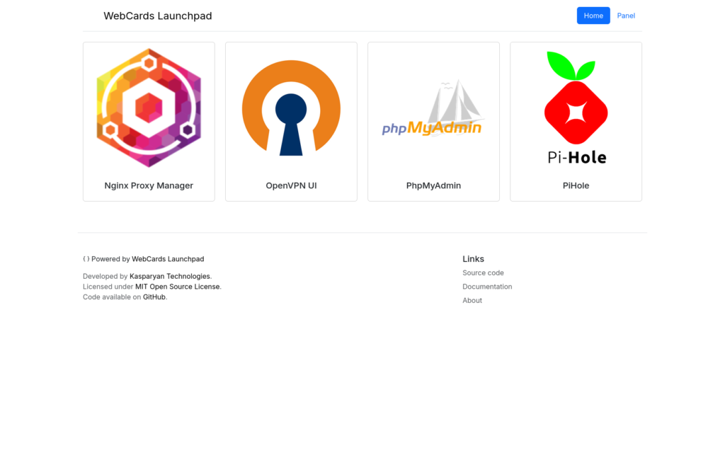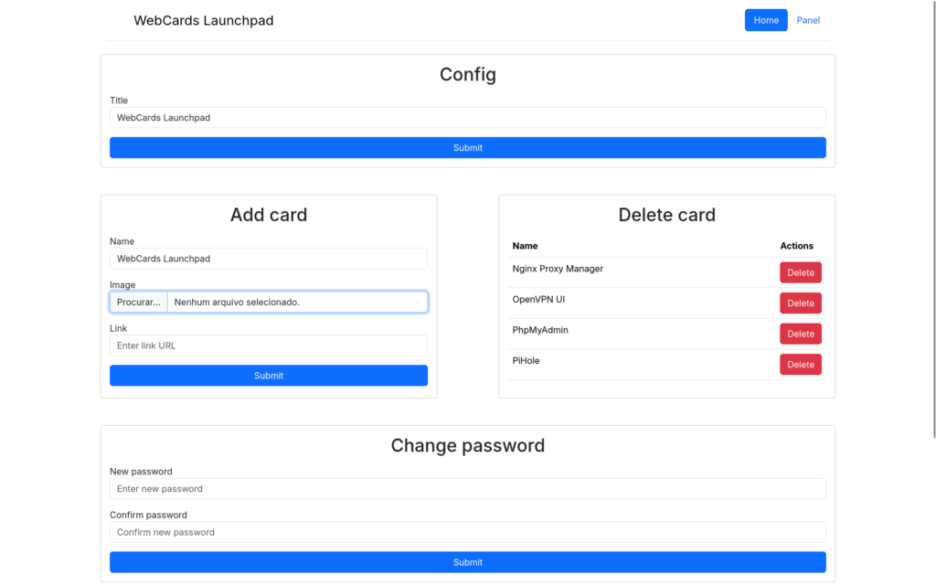🚀 WebCards LaunchPad é um projeto em andamento que estou desenvolvendo para facilitar o acesso rápido a links importantes, como sites favoritos, serviços auto-hospedados ou qualquer outra coisa que você deseje ter à mão. Este é um projeto pessoal, mas que espero que possa ser útil para outras pessoas também!